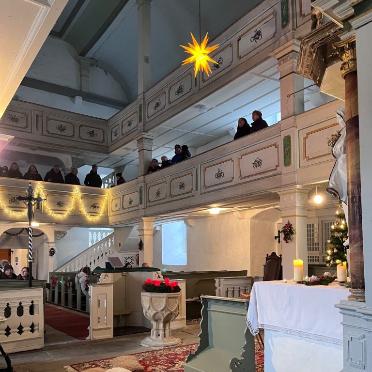 Am Heiligen Abend lädt die Kirchgemeinde um 14.00 Uhr zur Christvesper. Die Dingslebener Kirche wurde im Vorfeld liebevoll weihnachtlich geschmückt. Den besinnlichen Gottesdienst hält die Diakonin Sandra Konsolke. Nach dem Glockengeläut spielt ein Bläser-Quartett aus Dingsleben, ehe die Kirchenorgel mit weiteren Liedern zum gemeinsamen Singen einlädt. Die Dingslebener Kinder haben wie in jedem Jahr ein Krippenspiel vorbereitet, das mit ein bisschen Aufregung vorgetragen wird. Im Publikum sitzen viele Dorfbewohner, aber auch Gäste aus der Ferne, die ihre Familien in Dingsleben besuchen. Das Wetter an diesem 24. Dezember ist sehr kalt, eisig und windig. Weiße Weihnachten gibt es auch in diesem Jahr nicht.