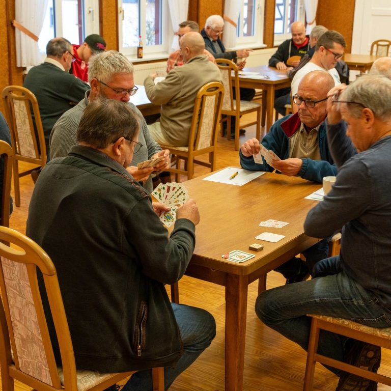 Zu Beginn der kälteren Jahreszeit werden Zusammenkünfte zunehmend nach drinnen verlegt. So findet zum ersten Mal seit vielen Jahren wieder ein Preisskatturnier in Dingsleben statt. Organisiert wird das Turnier vom örtlichen Sportverein in Zusammenarbeit mit dem Sportfreund B. Frank aus Gleichamberg. Gespielt werden drei Serien zu je 36 Spielen. Das Startgeld beträgt 15 Euro und wird in Summe am Ende vollständig ausgezahlt. Die drei besten Spieler jeder Runde erhalten einen Seriensieg-Preis. Etwa zwei Dutzend Spieler aus Dingsleben und den Nachbardörfern finden sich zusammen. Die Versorgung mit Bockwurst, belegten Brötchen und Kuchen ist sehr beliebt.